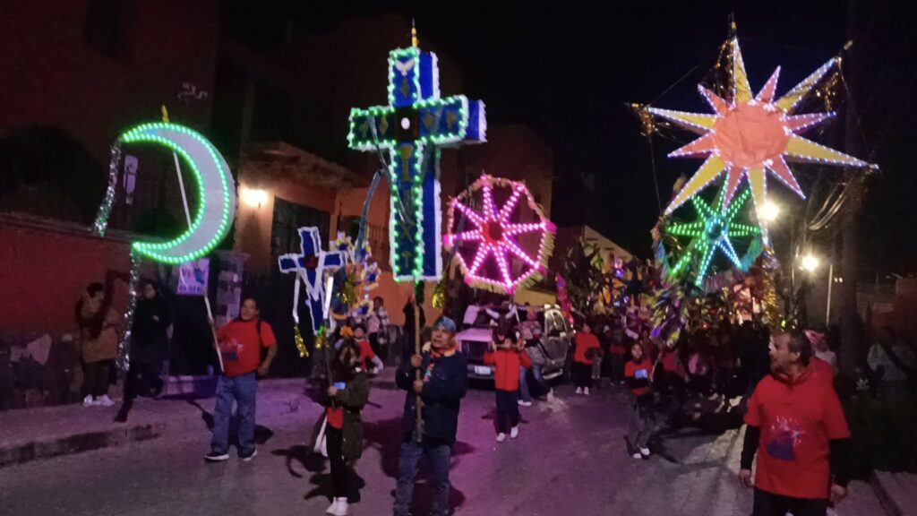 Desde la noche del viernes, miles de sanmiguelenses y visitantes se reunieron en las calles del centro histórico para participar en una de las celebraciones más queridas del año. Con mojigangas gigantes, estrellas de colores, cohetes, bandas de viento y comparsas, la ciudad se llenó de ritmo y movimiento en una jornada que duró hasta el amanecer.