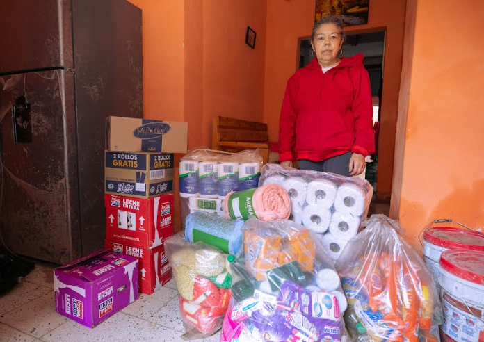 Además, se entregaron materiales de limpieza como escobas, recogedores, jaladores, palas, cubetas y mechudos, así como 200 kits adicionales distribuidos en el templo de la comunidad, disponibles para que las familias los recojan en los próximos días.