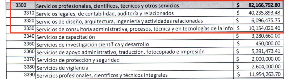 Aquí se esconde de TODO: asesorías, abogados, limpieza, gasolina, rentas, estudios, consultorías, eventos, seguros, mantenimiento y toda clase de mini–hoyitos donde se va el dinero público como si fueran agujeros negros.