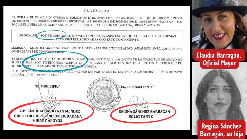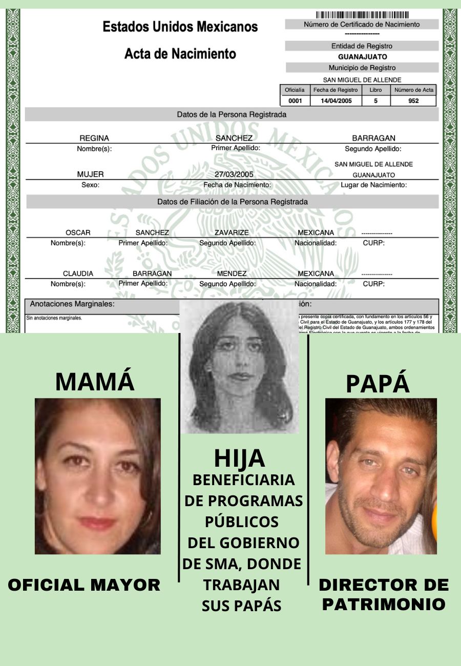 • Ya luego cuando empezaron las campañas, la puso en Atención Ciudadana y ahí, tras la inflación de contratos, de todo en lo que más la cafeteó (término de ya la regó ¡otra vez!) fue entregar apoyos por $10 mil pesos de un programa social de apoyo a personas de la sociedad, pero a su propia hija, Regina Sánchez Barragán, quien a su vez es hija del director de Patrimonio en el gobierno del michoacano, Óscar Sánchez Zavarize, quien tras años dando clases en la secundaria Leobino Zavala, le consiguieron la chamba en Patrimonio para que ganara más porque la hija ya estudia en la universidad y hay que pagar.
