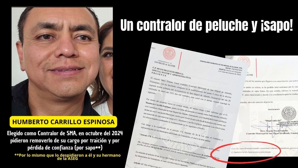 San Miguel de Allende está siendo robado a plena luz del día. Pero las denuncias no avanzan, porque el mismísimo Alí Babá tiene su ejército de tapaderas, encabezado por el Contralor de peluche, ese personaje de papel maché llamado Humberto Carrillo Espinosa. Un tipo con tanto conflicto de interés que podría inaugurar una guerra civil entre su ética y su cartera.