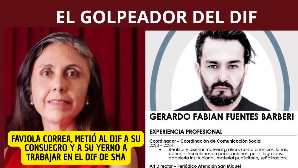 Los vecinos ya empezaron a armar el rompecabezas y entre todos descubrieron que el personaje en cuestión se trata de Gerardo Fabián Fuentes Barberi. Diseñador gráfico por oficio, burócrata por rebote y sobreviviente de la fauna administrativa local. Un hombre que, según la transparencia, brincó de los medios a la nómina pública como quien cambia de mesa en cantina y no, no fue por méritos, no fue por capacidad, ni tampoco fue por sus conocimientos, fue porque la consuegra, ES LA DIRECTORA DEL DIF ¿QUIÉN? nada más y nada menos que Faviola Correa González