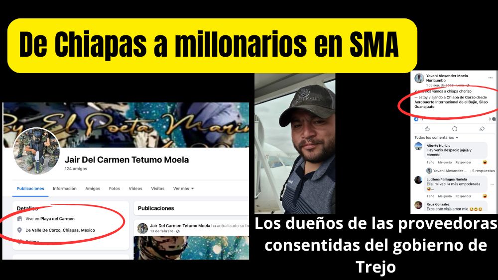 Y es que nomás llegó el michoacano al poder y dos chiapanecos de nombre Mario Hernández García y Amilcar Berlain Moela Flores, que causal eran grabadores de cuadrilla de la directora de obras María Elena Vázquez, y ellos crearon con $50 mil pesos una empresa llamada Construcciones y Proyectos Palmesa, que hasta les dio fe el notario y ex alcalde panista Óscar Arroyo. La empresa la comenzaron con $50 mil pesitos y hoy SON MILLONARIOS ¡ASÍ LOS MILAGROS DEL MICHOACANO TREJO!