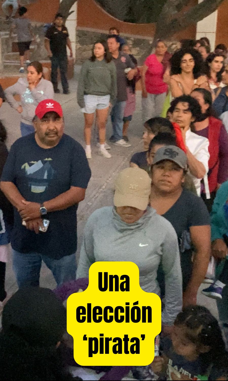“Pirata”, con convocatoria vía WhatsApp, sin credencial de elector, y con un “tuper para pan” que convirtieron en urna improvisada, todo organizado por el comité del actual delegado Jesús Apoderado, quien claro ¡se apuntó para la reelección!.