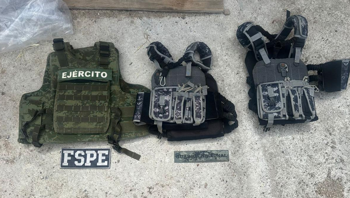 El lugar, que fungía como escondite criminal, localizaron vehículos con reporte de robo, armas de fuego y equipo táctico.
