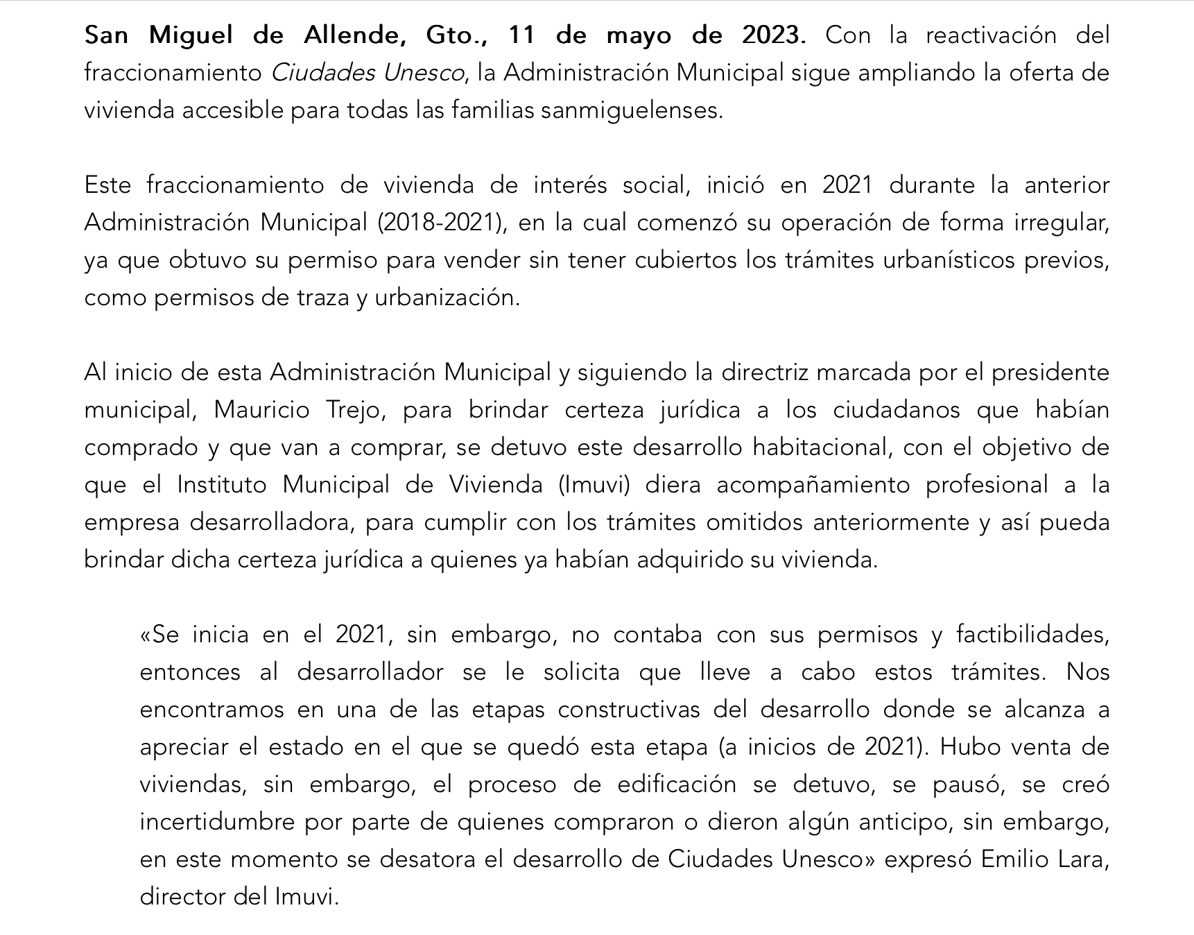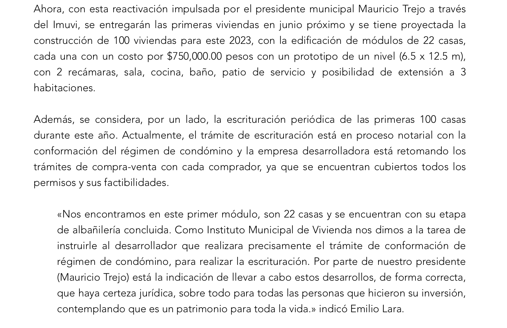 Para quienes no siguen la trama, este “Ricardo” parece referirse al responsable del proyecto que dejó a cientos sin casa, iniciado por Luis Alberto Villarreal. Pero lo curioso aquí es que fue el mismo Trejo ordenó al entonces encargado del. IMUVi, Emilio Lara, que jurara y perjurara que en mayo de 2023 que ya estaba todo resuelto, que iba para adelante, que ya todo estaba listo para que los vecinos pudieran empezar a recibir sus casas.