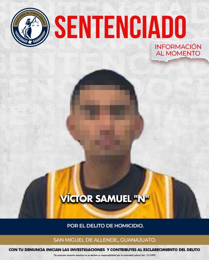 SAN MIGUEL DE ALLENDE. –Nueve años y dos meses tras las rejas. Así terminó la historia de Víctor Samuel “N”, quien fue sentenciado por asesinar a un hombre disparándole por la espalda en San Miguel de Allende. La Fiscalía General del Estado logró probarle todo y la jueza no dudó: culpable de homicidio.