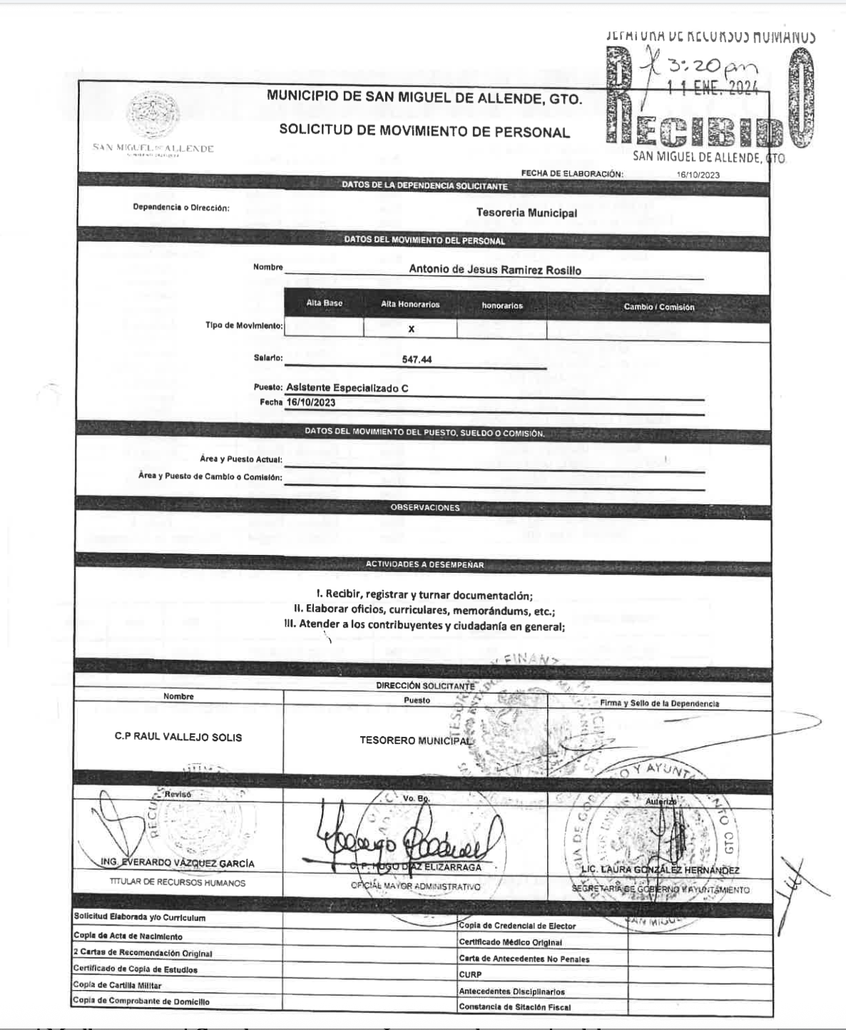 El documento, obtenido vía transparencia, confirma que Antonio de Jesús estaba en nómina del municipio. Sin embargo, los registros de asistencia, reportes y evidencias de trabajo simplemente no existen.