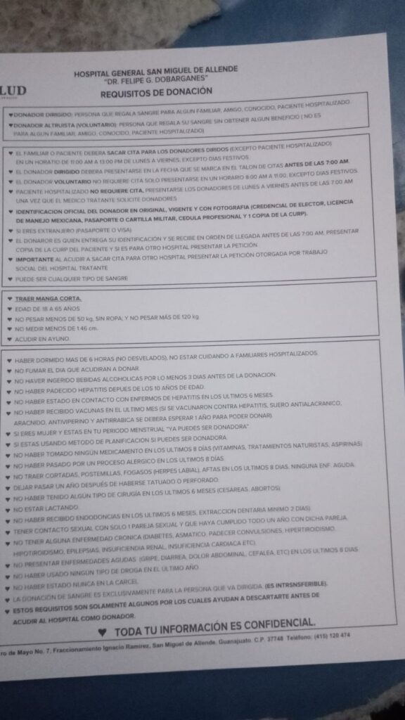 Quienes puedan ayudar, pueden presentarse a partir de mañana antes de las 7:00 a.m. en el Hospital General, a nombre de Geraldine Luna Morales. La hoja con los requisitos ya está disponible.