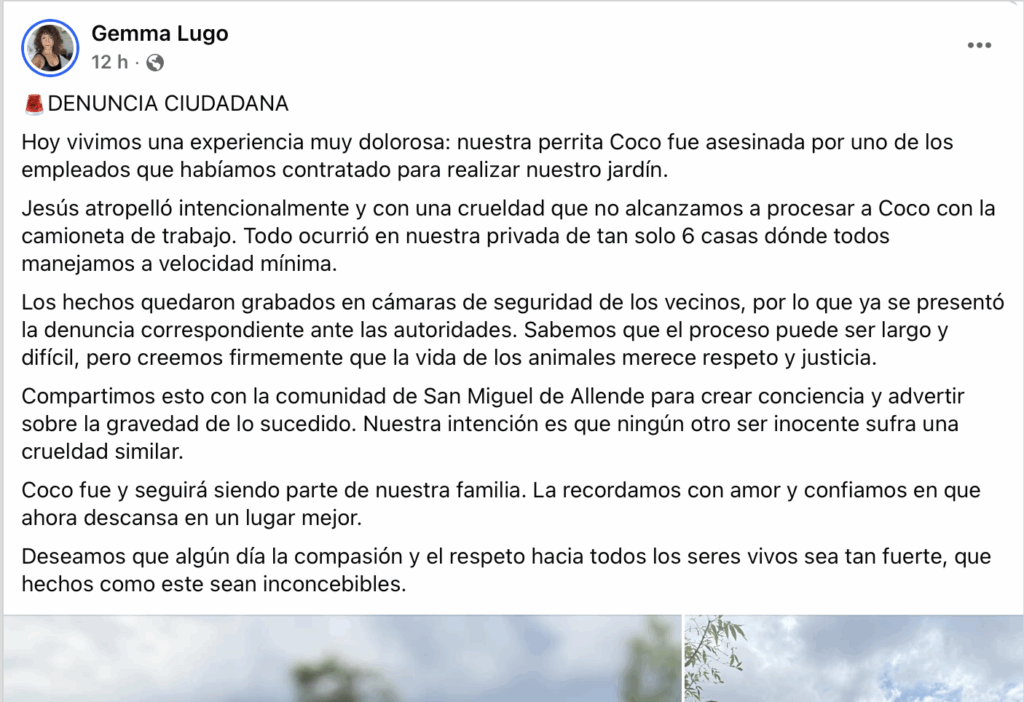 En su post de Facebook, Gemma Lugo indica que “Coco” no era solo una mascota, sino parte de la familia. Fue rescatada, cuidada y querida, y su partida deja un vacío enorme en sus dueños, quienes expresaron: