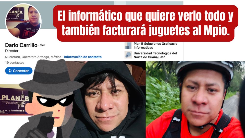 Así que la recomendación es: SI NO USAS TU TELÉFONO EN LAS OFICINAS ADMINSITRATIVAS, MUCHO MEJOR, porque el de informática y ahora proveedor oficial de juguetes del municipio, Darío Carrillo, te está espiando junto con su séquito de espías región 4.