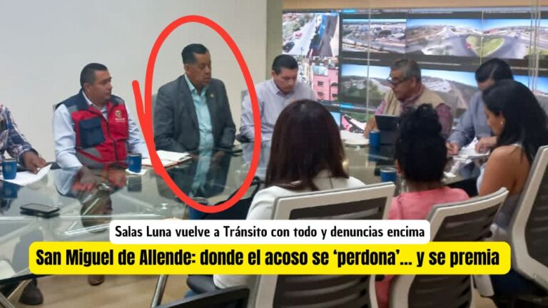 Redacción newssanmiguel@gmail.com SAN MIGUEL DE ALLENDE.- En una movida que ha dejado perplejos a muchos, el gobierno municipal de San Miguel de Allende, encabezado por Mauricio Trejo Pureco, ha reincorporado a Jorge Salas Luna como Director de Tránsito y Movilidad, a pesar de que enfrenta actualemente un proceso judicial por denuncias de acoso laboral, … Sigue leyendo Regresa Jorge Salas Luna a Tránsito en San Miguel de Allende, pese a denuncias de acoso y hostigamiento sexual