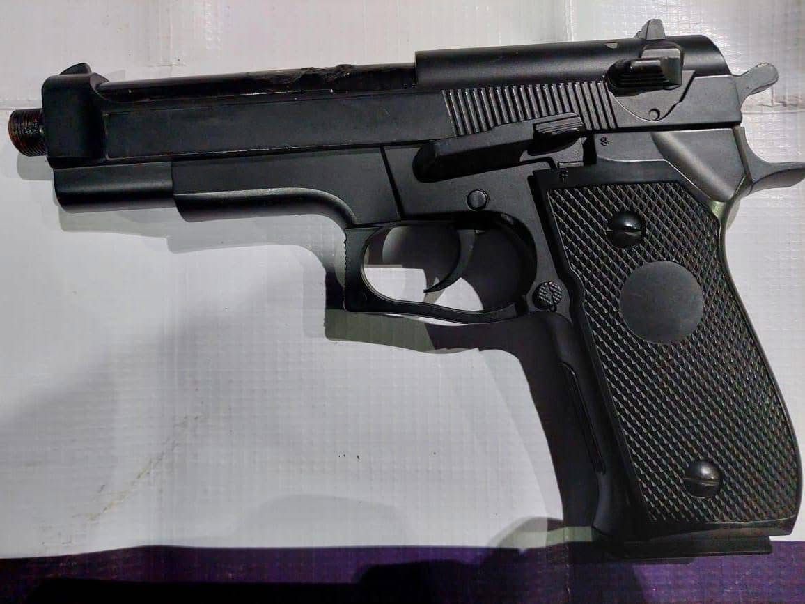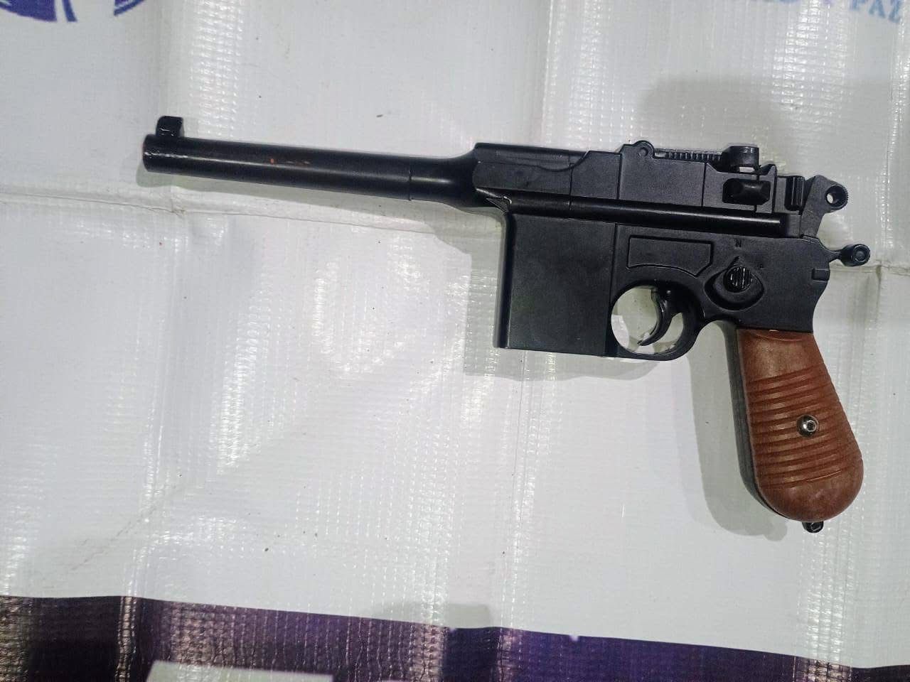 Entre los objetos asegurados se encuentran una camioneta Chevrolet Suburban, el arma corta localizada y varias réplicas de armas cortas con leyendas “MADE IN CHINA”, utilizadas presuntamente para amedrentar.