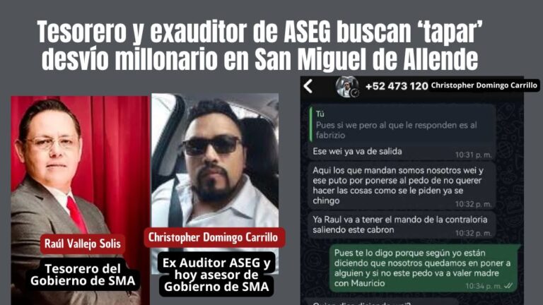Redacción newssanmiguel@gmail.com SAN MIGUEL DE ALLENDE.- Desde las entrañas del gobierno municipal encabezado por Mauricio Trejo Pureco, se empieza a destapar un nuevo complot para encubrir la desaparición de más de $65 millones de pesos detectados por la Auditoría Superior del Estado. El operador de esta jugada sería Christopher Domingo Carrillo, exauditor de la … Sigue leyendo Tesorero y exauditor de ASEG, buscan tapar desvío millonario descubierto por la Auditoría en San Miguel de Allende