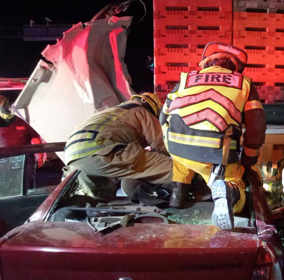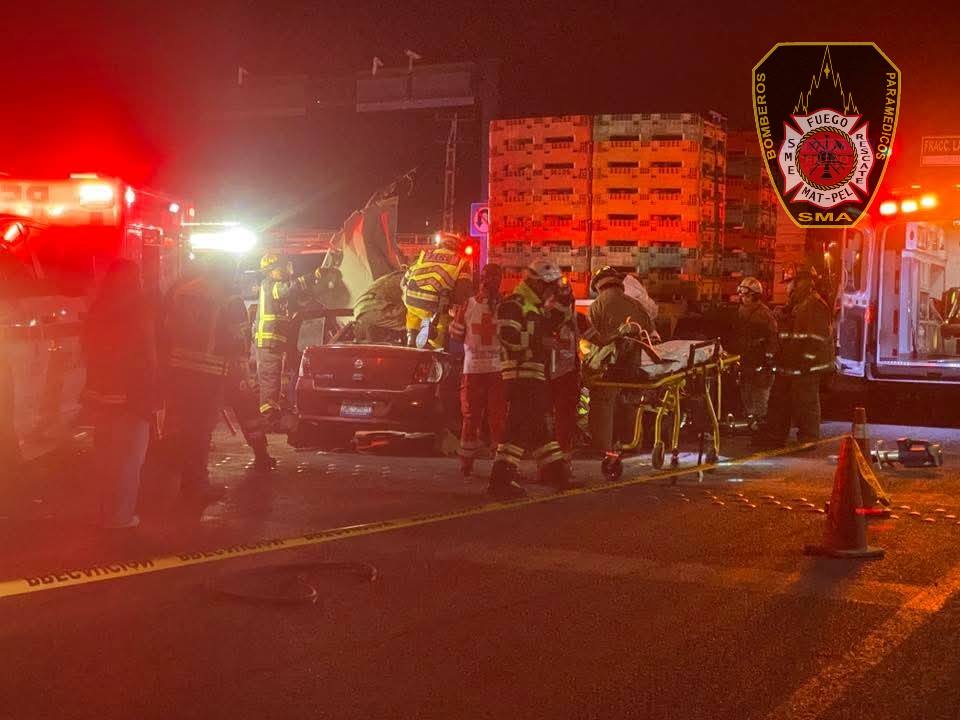 Unidades de emergencia se trasladaron de inmediato al sitio. Al llegar, localizaron el automóvil compacto debajo de la plataforma del camión. En el interior se encontraban atrapadas dos personas -el conductor y una mujer que viajaba como copiloto-, mientras que otras tres personas que viajaban en los asientos traseros resultaron lesionadas.